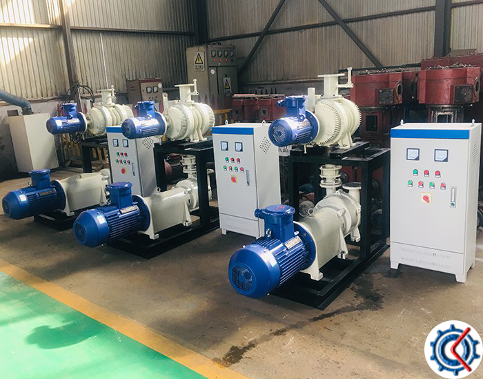羅茨水環真空機組的前級泵的工作液多采用水,也可采用有機溶劑(可用甲醇、乙醇、二甲苯、丙酮等有機溶劑)或其它液體,將前級泵作為閉路循環系統使用,大大減小了對環境的污染,同時大大提高了對有機溶劑的回收。其極限真空度由工作液的飽和蒸汽壓決定。